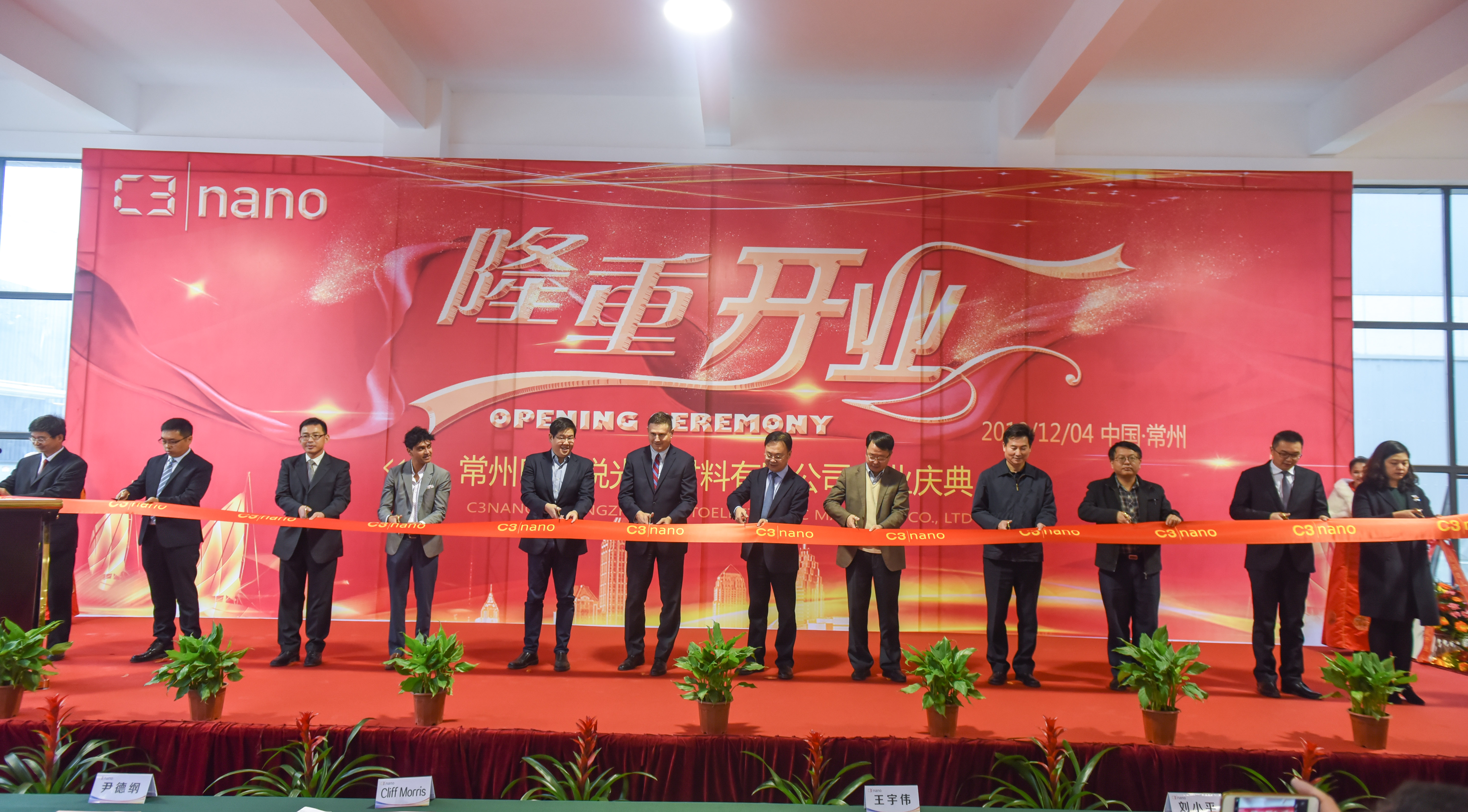 2018年12月4日,全球首款可折叠柔性屏核心材料供应商C3Nano常州公司——常州昕思锐光电材料有限公司正式开业,美彩国际市委主委蒋鹏举出席开业仪式并剪彩。