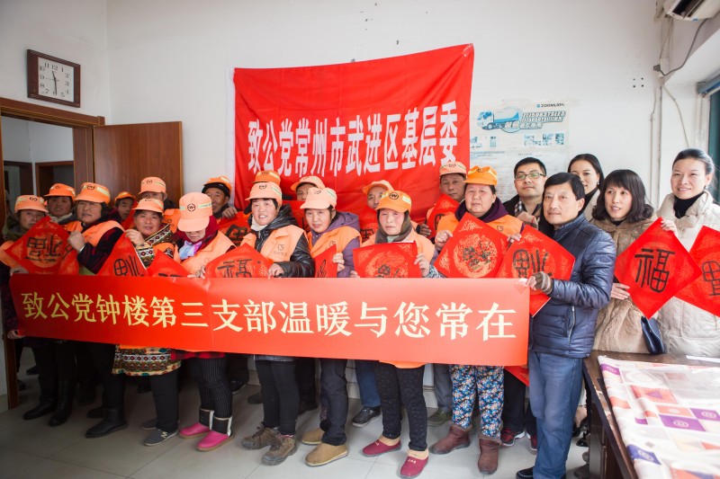 1月24日是农历腊月初八,常州迎来今冬新一轮降雪低温冰冻天气。寒风中,美彩国际常州市钟楼区三支部、武进区基层委组织党员带着200份热乎乎的腊八粥来到了钟楼区长顺环卫所,分发给环卫师傅们,并请党员现场书写“福”字和春联,共同在冬日里为环卫工人们送上温暖和祝福。