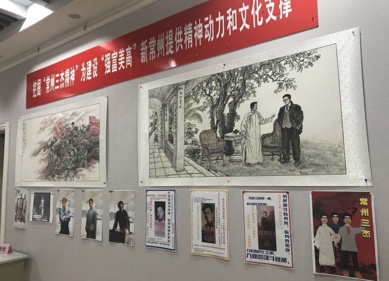 3月3日,由武进区基层委和常州市刘国钧高等职业技术学校联合举办的“常州三杰”红色文化美术作品展在常州市武进区图书馆开幕,展出的书画作品是由武进区三支部党员张俊杰、朱锦霞、李鸣楼、张正军组织刘国钧高等职校师生创作的。