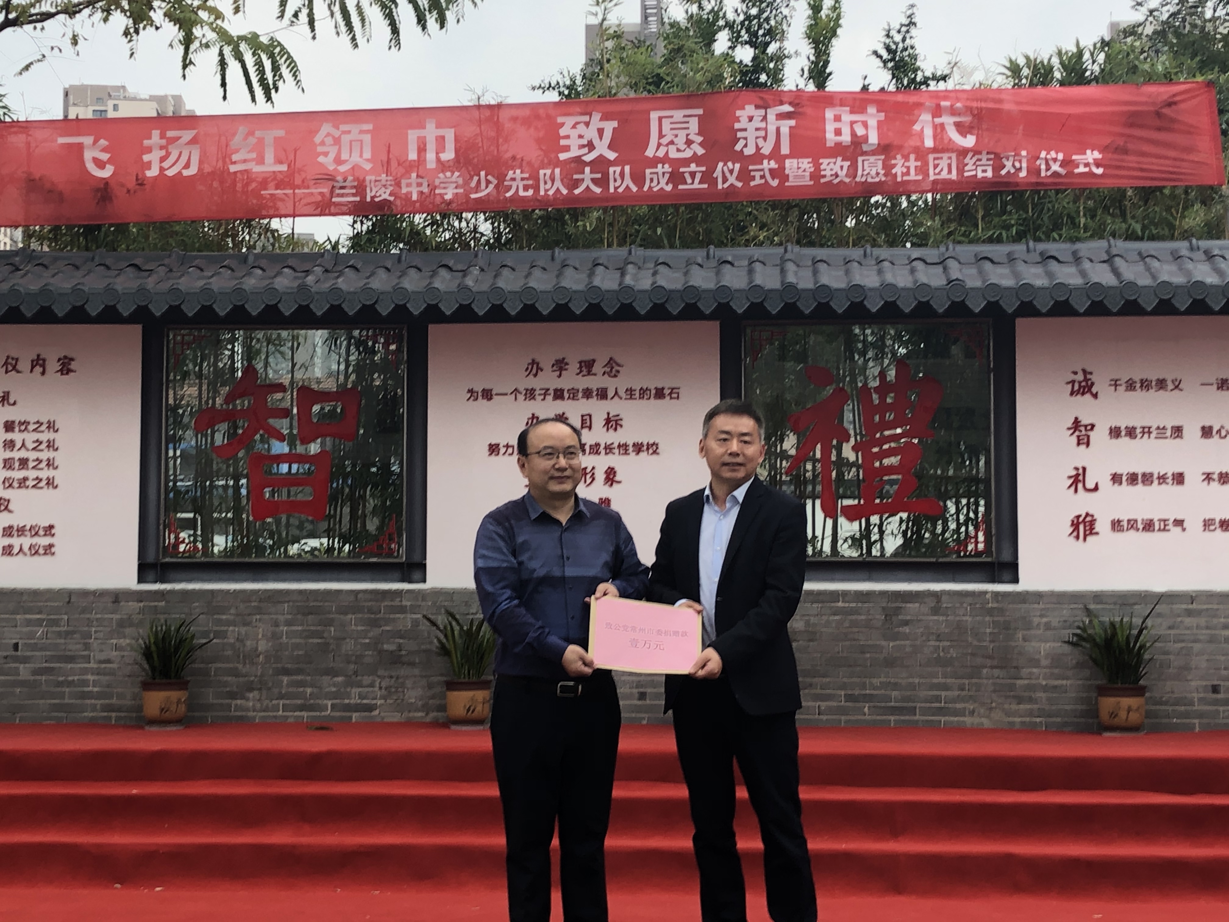 “我们是共产主义接班人,继承革命先辈的光荣传统……”10月22日下午,伴着嘹亮的歌声,常州市兰陵中学致愿社团捐赠仪式正式举行。与兰陵中学结对的天宁区基层委代表上台捐赠,并寄语同学们勤奋学习、快乐生活、健康成长。至此,美彩国际市委共建的4个“同心·致愿社团”2019学年捐赠工作全面完成,市委会“同心关爱基金”向4所学校的社团分别捐赠本学年度活动专项资金一万元。