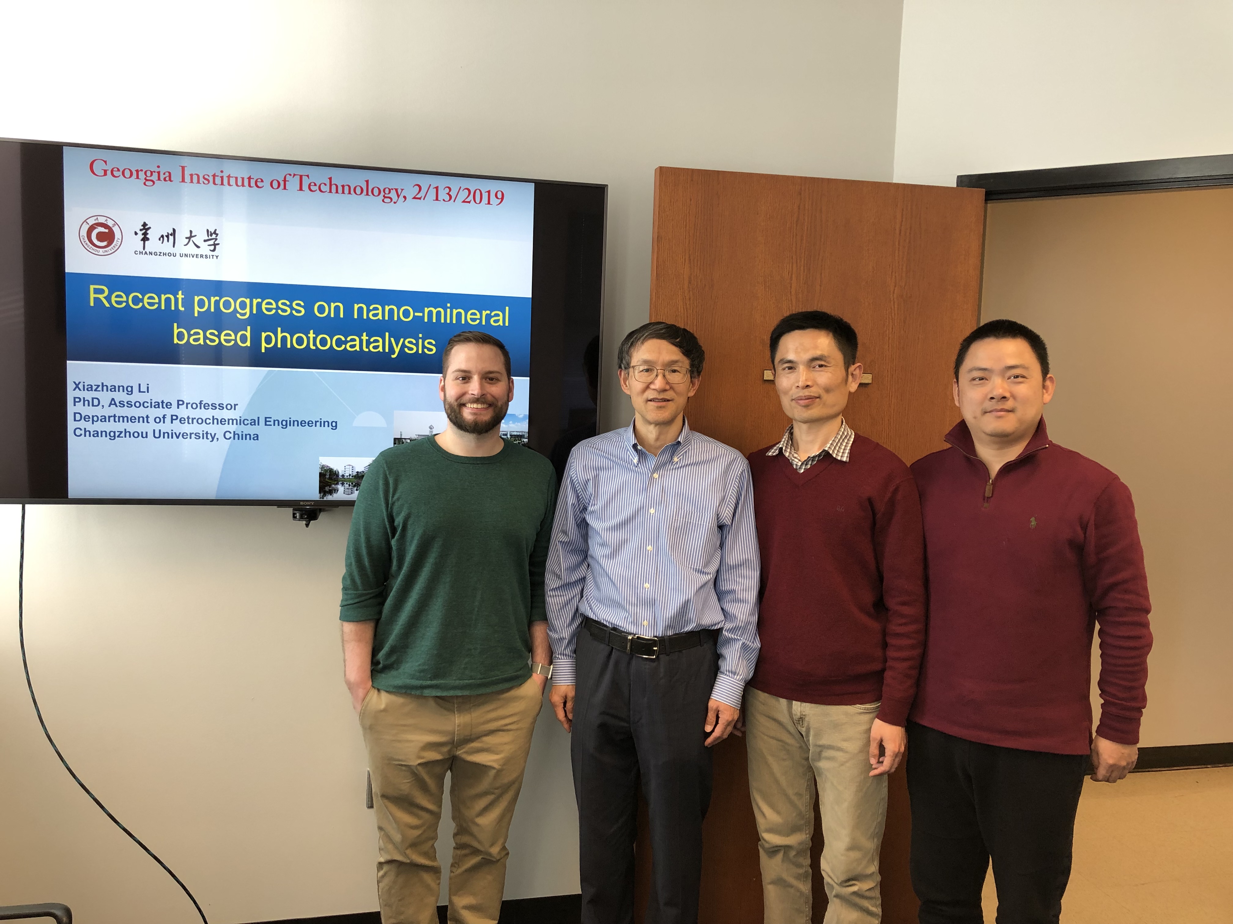 在美国特拉华大学,李霞章受先进电子显微中心主任Ni Chaoying教授邀请,作了题为“Cost effective nanocomposite: implications for the photo-driven catalysis”的学术报告。在美国佐治亚理工学院,他受环境系的Chen Yongsheng教授邀请,作了题为 “Recent progress on nano-mineral based photocatalysis”的交流报告,介绍了近年来纳米矿物复合材料在环境和能源应用领域取得的最新研究进展。两校课题组师生就报告内容进行了深入的探讨与交流,初步达成了进一步合作意向。