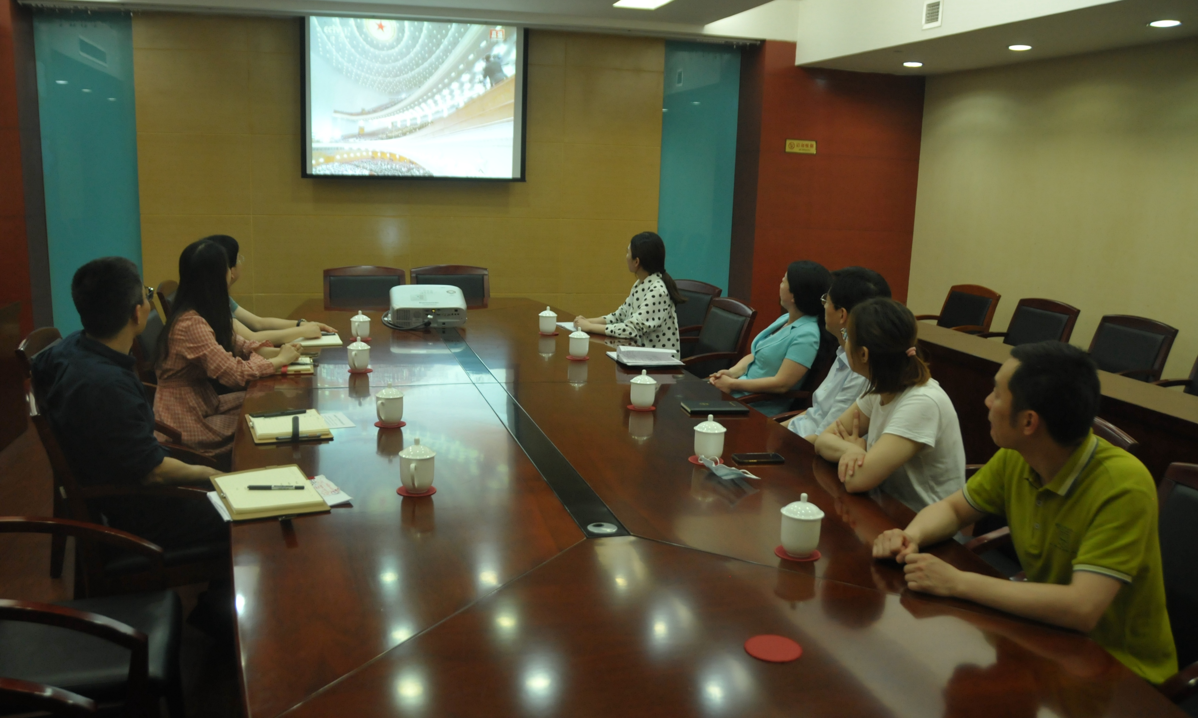 5月21日,美彩国际常州市委组织党员代表在市行政中心集中收听收看全国政协十三届三次会议开幕式。