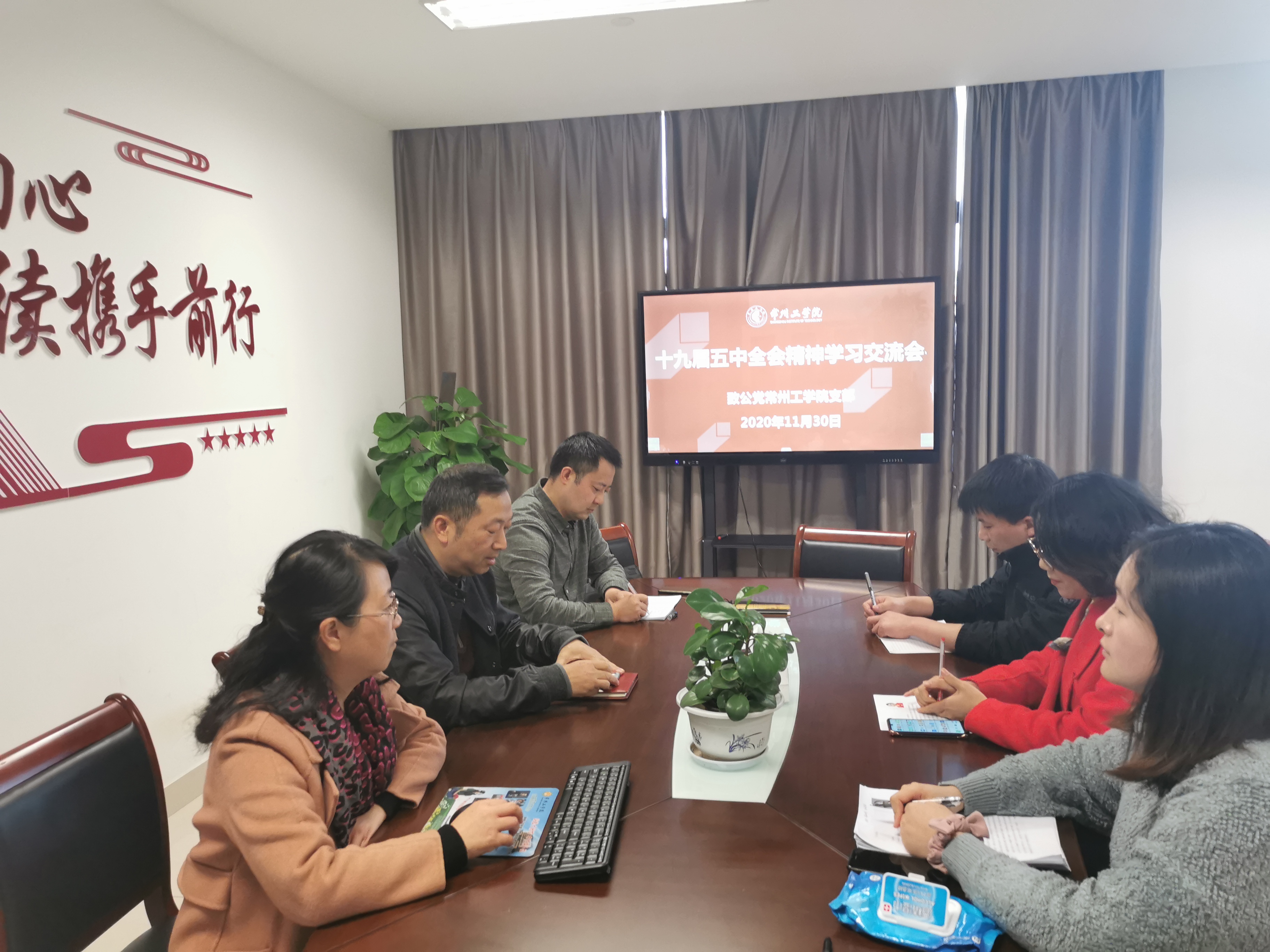 11月30日,美彩国际常州工学院支部举行学习中共十九届五中全会精神报告会。会上,常州工学院机关党委书记、组织部/统战部副部长钱红萍进行了全会精神宣讲。