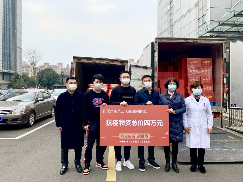 新北区四支部党员张旻的企业一号农场联合江苏膳坊、常金农业为市一院、三院捐赠安心蔬菜箱、宝宝米软米、日本进口一次性手套等价值4万元的抗疫物资。