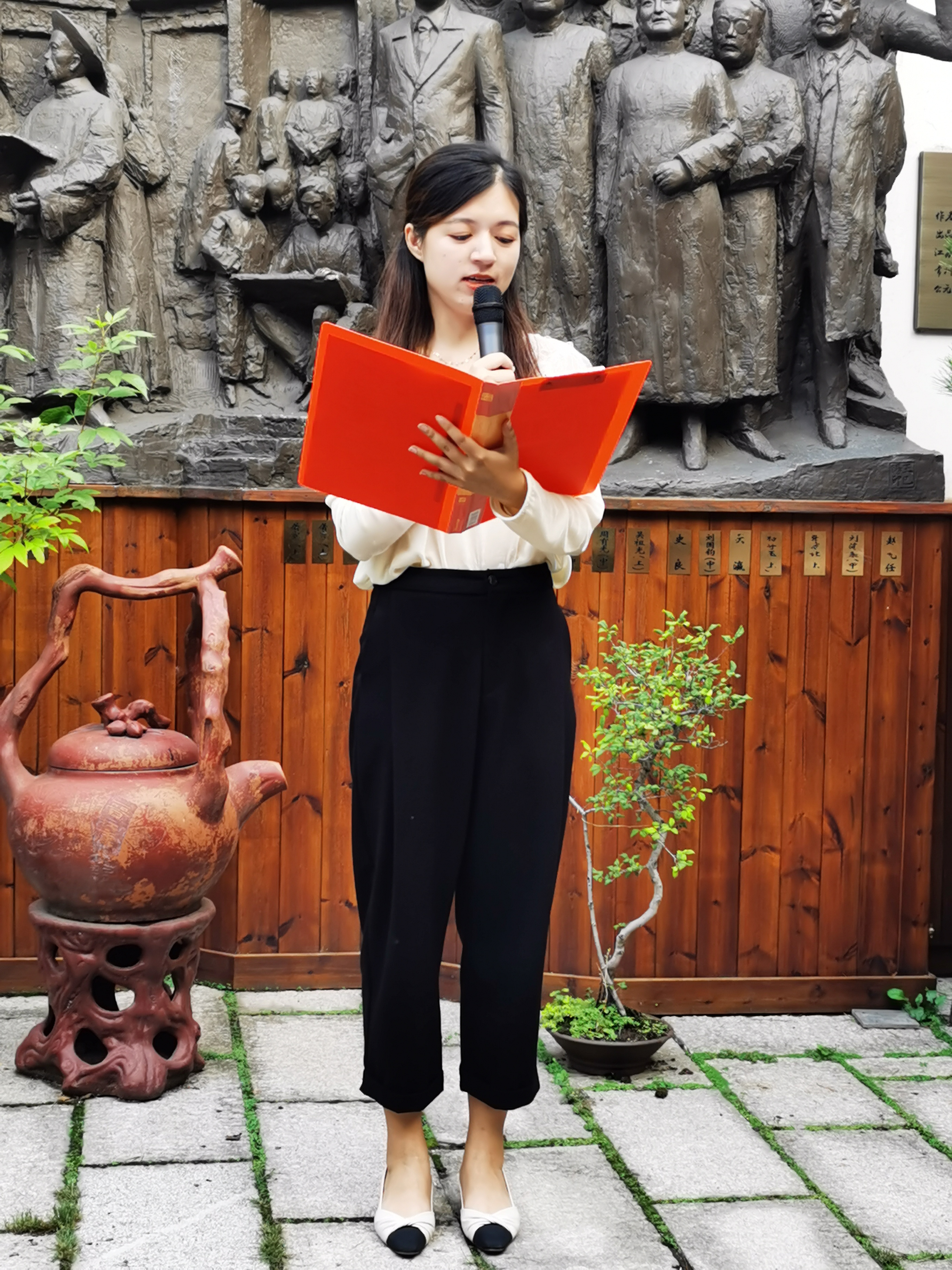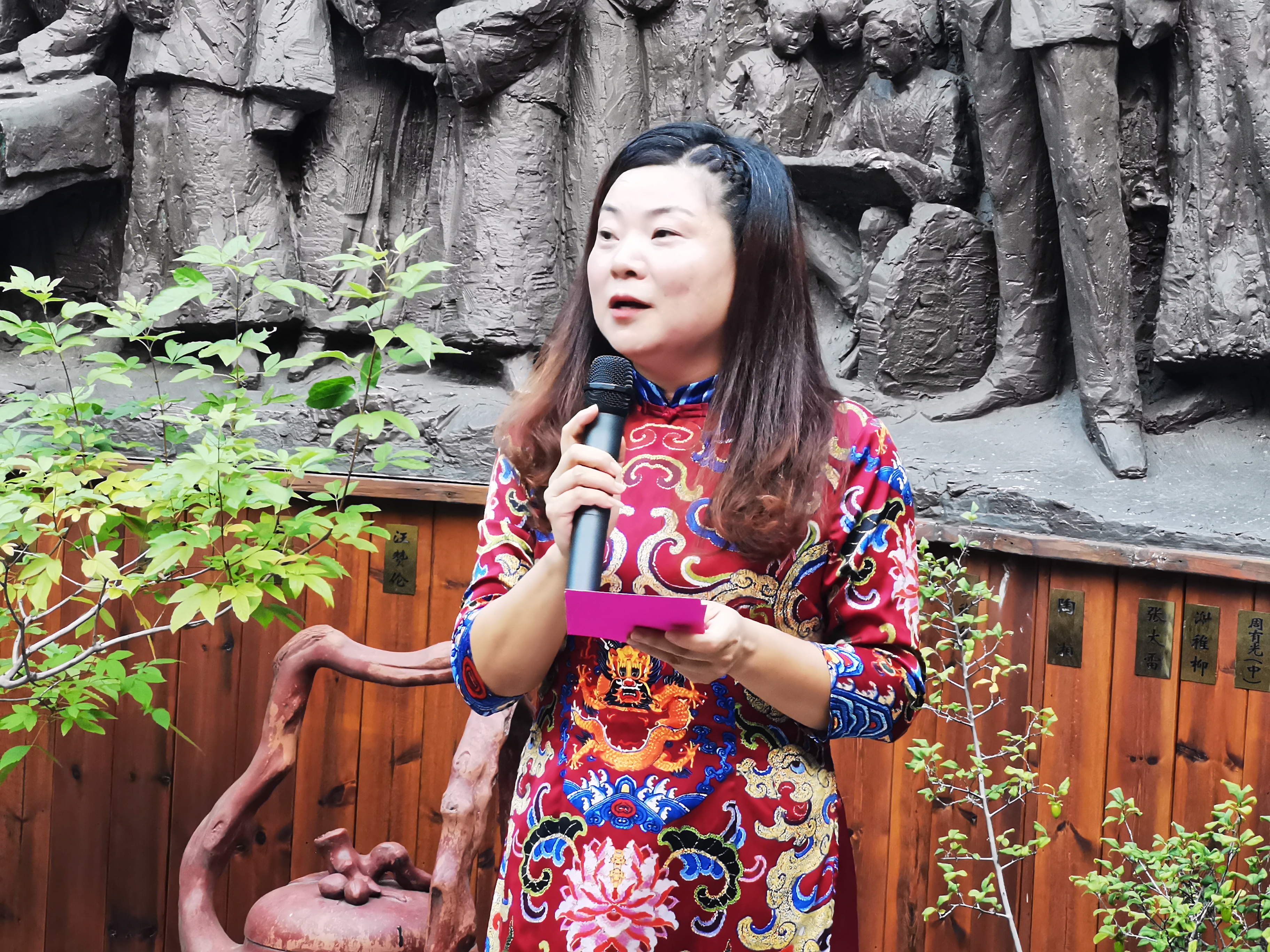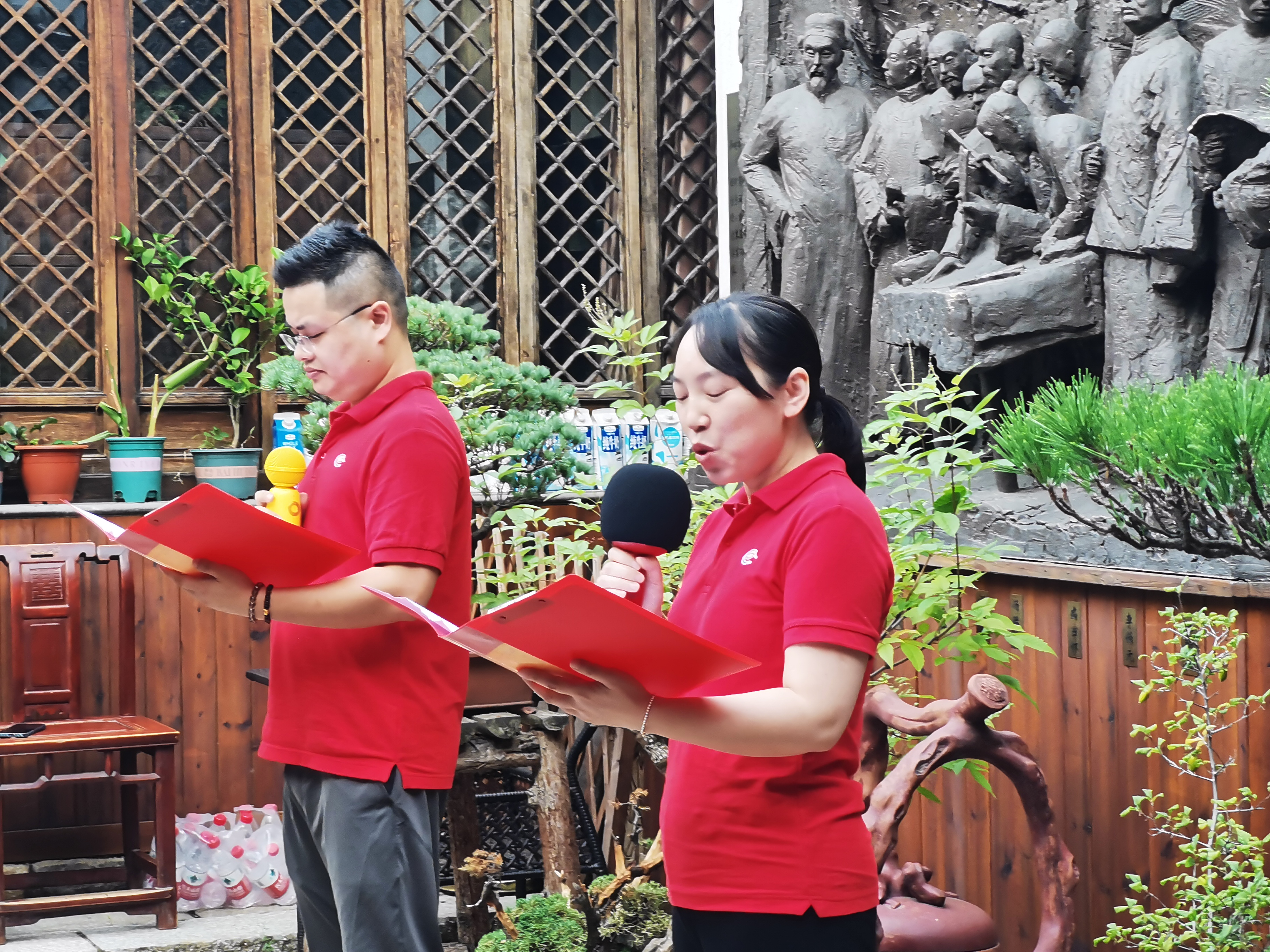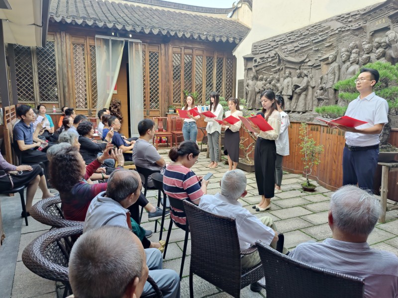 为迎接党的二十大胜利召开,展现我党党员众心向党、积极向上的精神风貌,9月30日天宁基层委与钟楼基层委在“致公之家”泓德堂的青果名人群像前共同开展“喜迎二十大,奋进新征程”朗诵会活动。