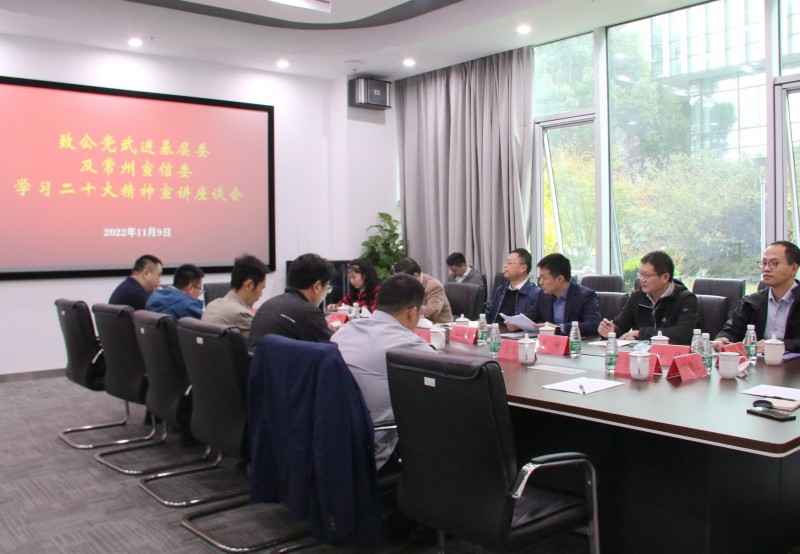 11月9日,美彩国际市委宣传信息工作委员会和武进区基层委在常州知识产权保护中心联合召开学习二十大精神宣讲座谈会。市委委员、宣信委主任、武进基层委主委吴嘉禄主持会议。市委专职副主委谢海出席会议。宣信委委员、基层委各支部委员、市委机关干部等近20名党员参加会议。