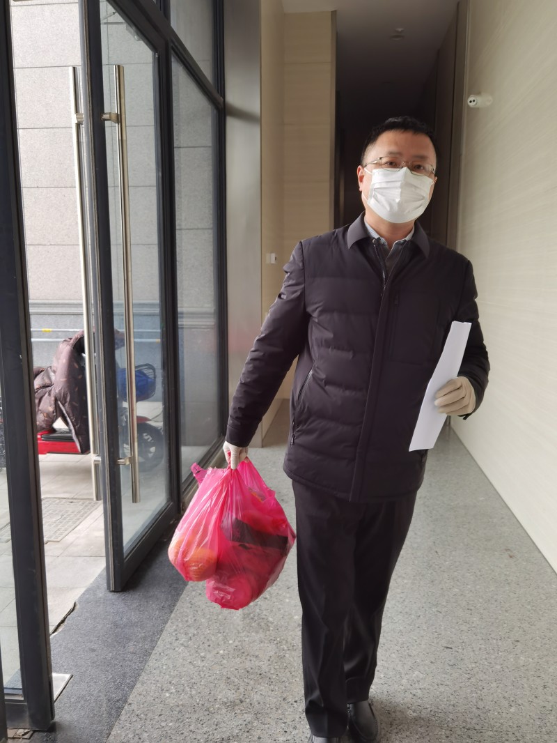 机关支部党员张备主动参与居所万福桥社区的防疫志愿者工作,为封控楼幢运送生活用品。
