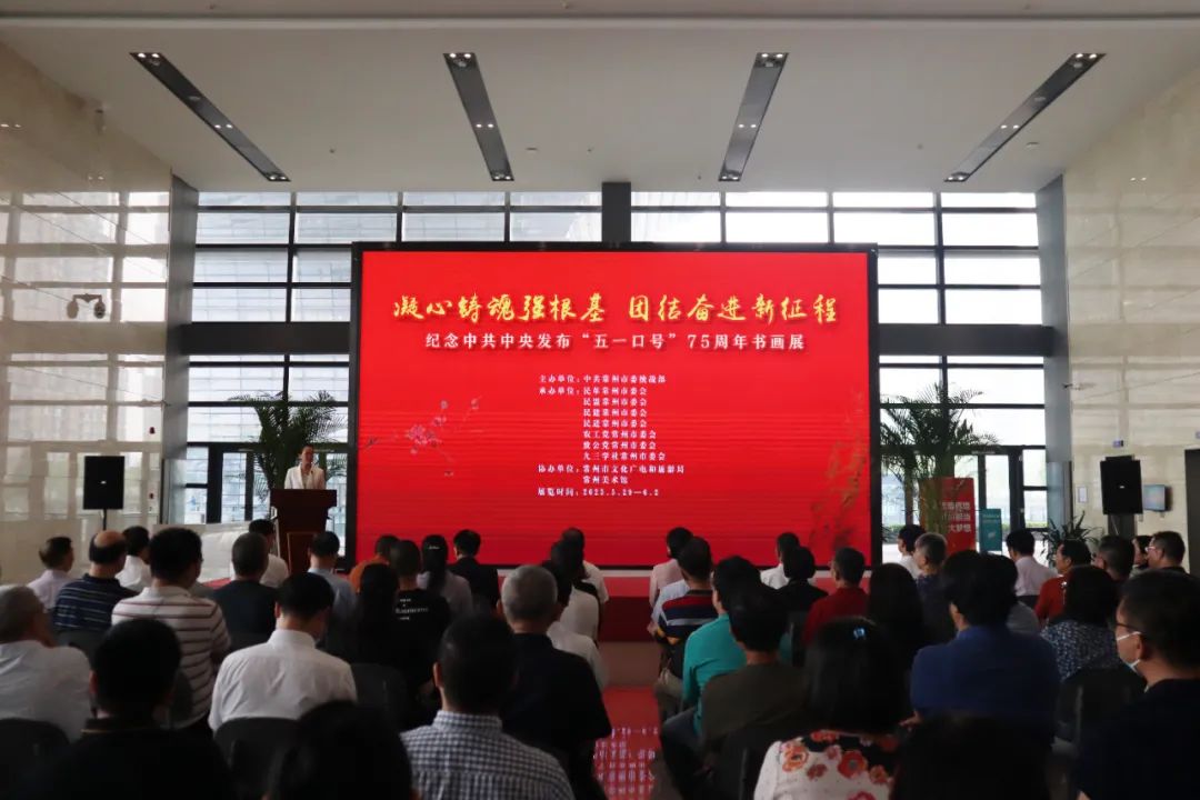 5月29日上午,“凝心铸魂强根基、团结奋进新征程”——纪念中共中央发布“五一口号”75周年书画展开幕式在常州美术馆举行。美彩国际江苏省委会副主委、常州市委会主委,副市长蒋鹏举出席开幕式,美彩国际市委会专职副主委谢海和机关全体同志参加活动。