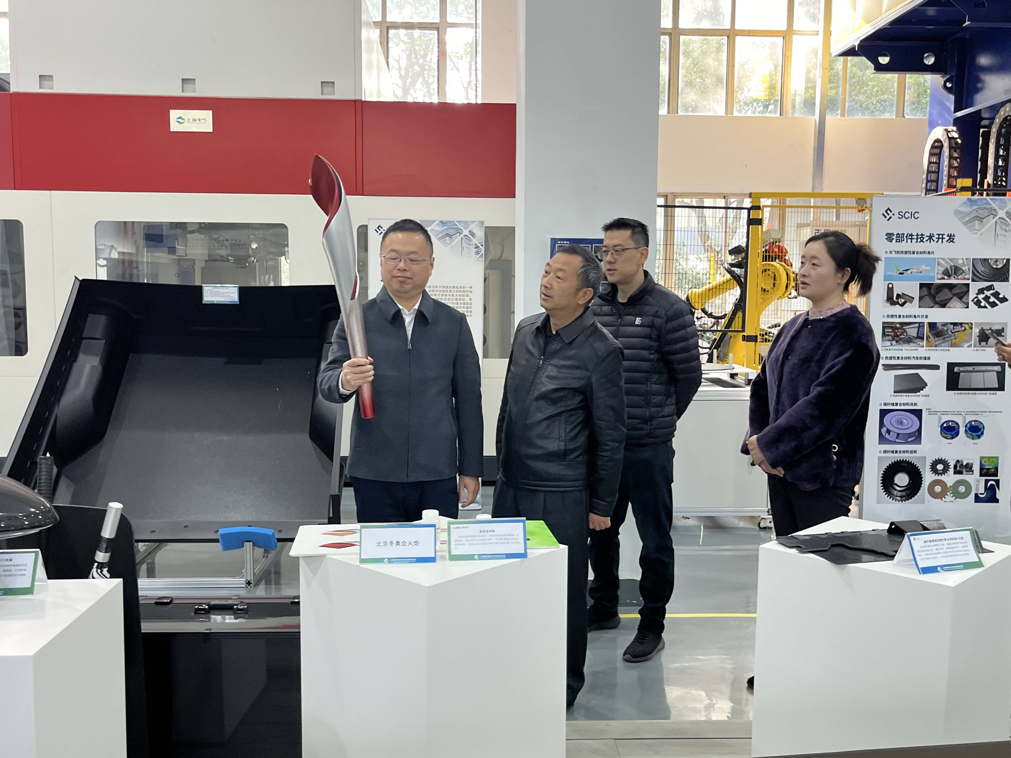30日,调研组一行来到上海碳纤维复合材料创新研究院,了解研究院发展历程和产学研用一体化思路。在座谈会上,双方围绕如何挖掘潜力项目、培育优质企业等方面进行交流。之后,调研组还赴金山石化参观了碳纤维材料展厅,详细了解碳纤维材料在各行业的应用。