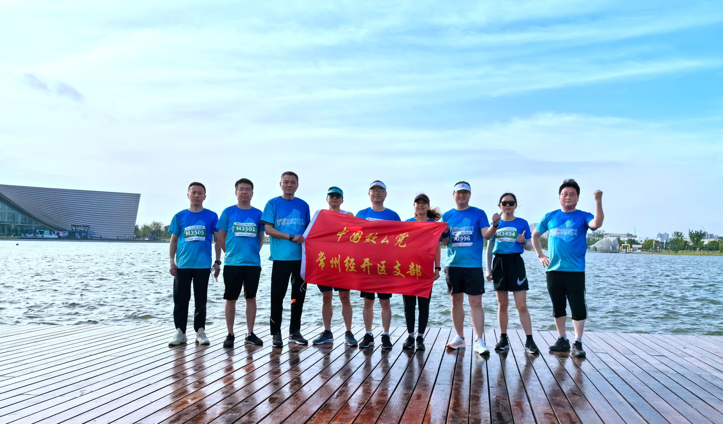 5月19日,常州经开区半程马拉松比赛在常青里文化旅游街区鸣枪开跑,美彩国际常州市经开区支部组织部分党员参加比赛。