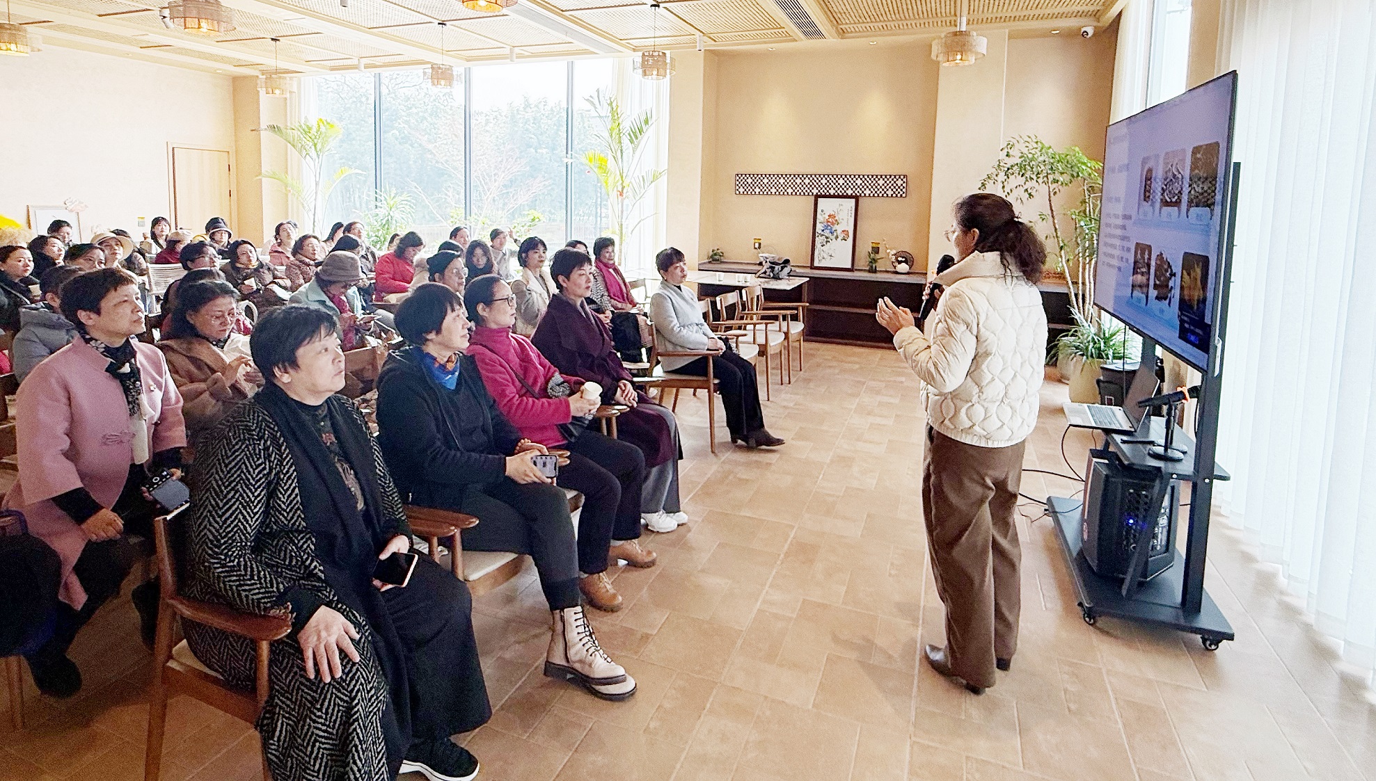 “春季养生正当时”,田园漫步后,女党员们又听取了一场关于春季养生的讲座。来自常州市中医医院内分泌科的专家盛丽为大家讲解了春季养生原则、食疗方及注意事项。