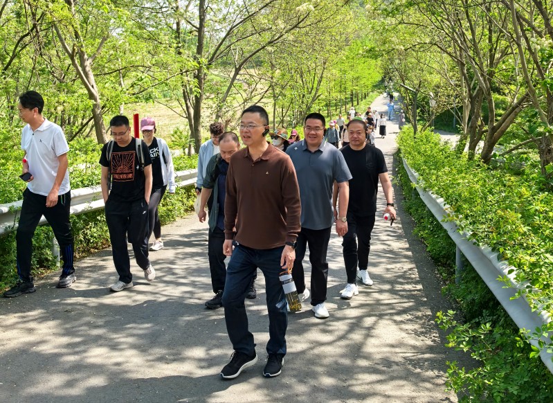 四月的小黄山树林葱郁,湖水灵动,充满野趣。党员们一边在山林间沿着步道前行,用相机定格自然美景;一边听取党员周战军对小黄山的讲解介绍,了解其深厚的历史文化底蕴。