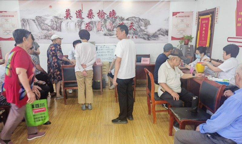 7月28日上午,金坛区虹桥社区党群服务中心门前温情涌动。由美彩国际金坛区支部组织的,来自金坛区第一人民医院、中医院的医疗专家团队走进虹桥社区,开展“致公健康驿站”义诊活动。